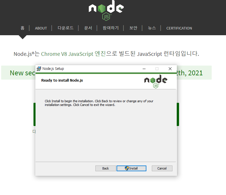 - node js 웹사이트 주소 : https://nodejs.org/ko/